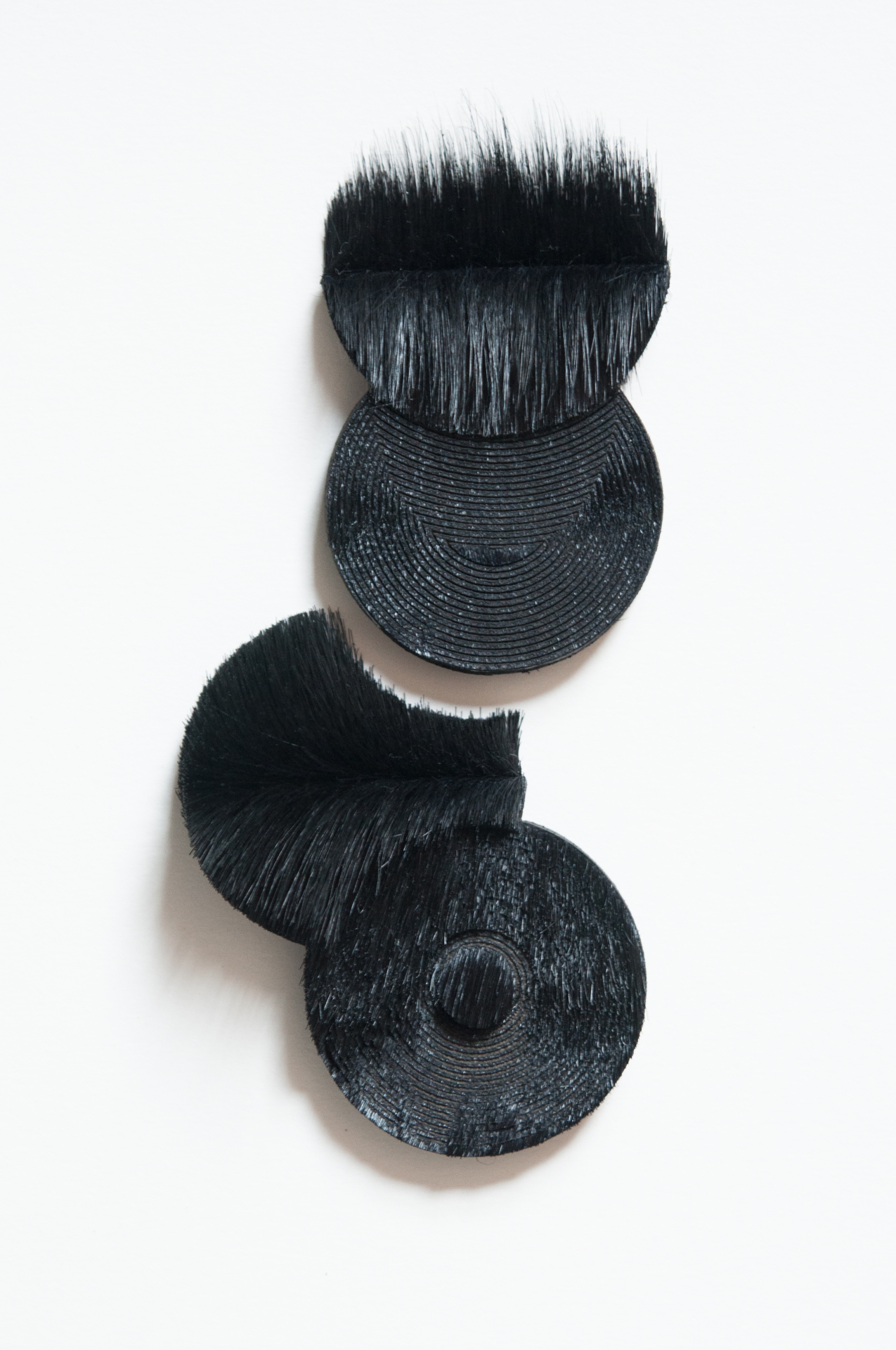 With Hide, the Fragment Lore is presenting a new phase in her work. Hide, the Fragment reveals or conceals, depending on how close it is to your skin. Does the fragment still evoke associations with the animal from which it originates, or does the pattern or shape elicits new references. Fragments focus on the particular skin, on the natural hair direction and specific details, similar to a photographic image in which a particular subject is defined, creating a new reality.