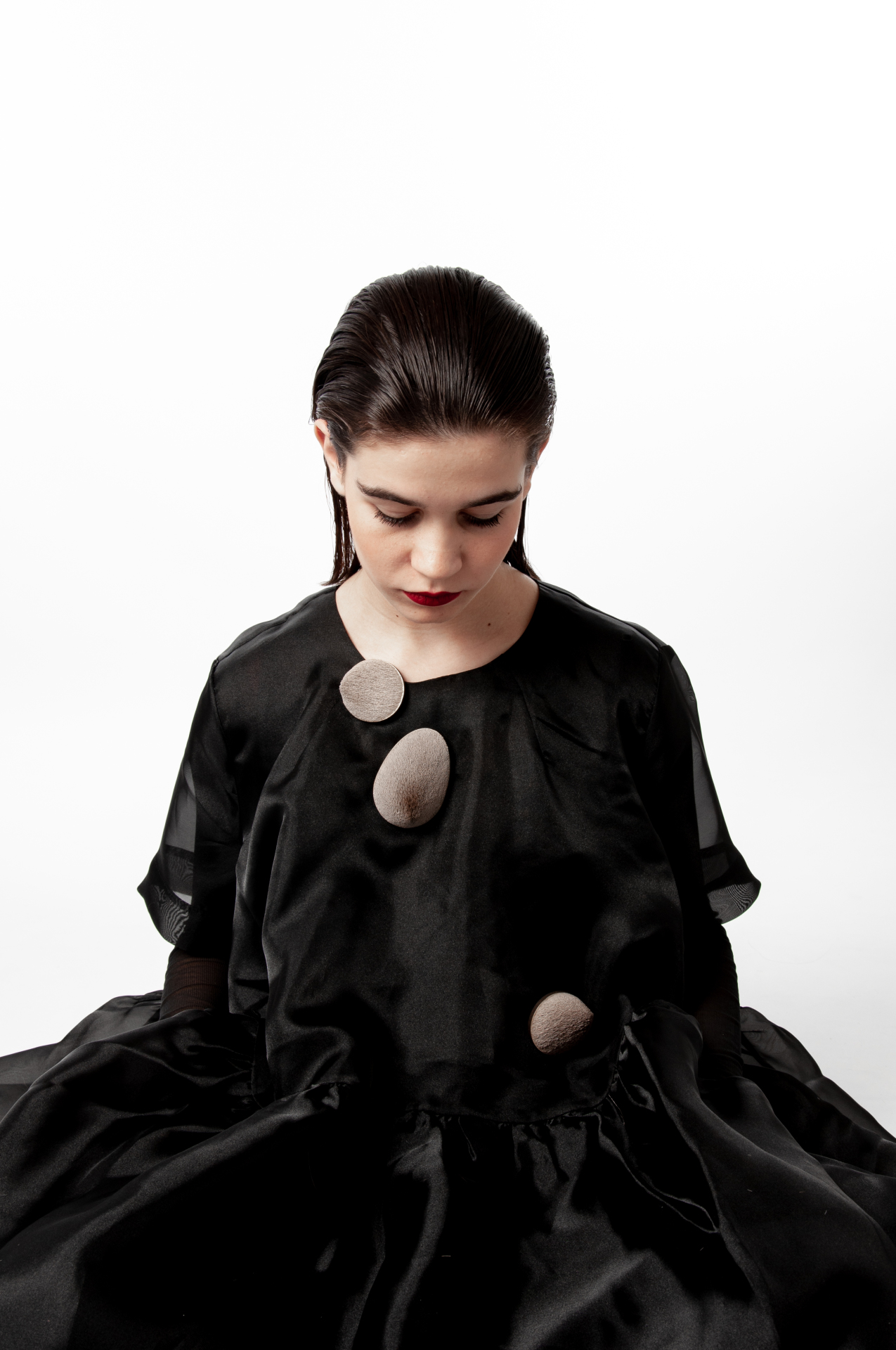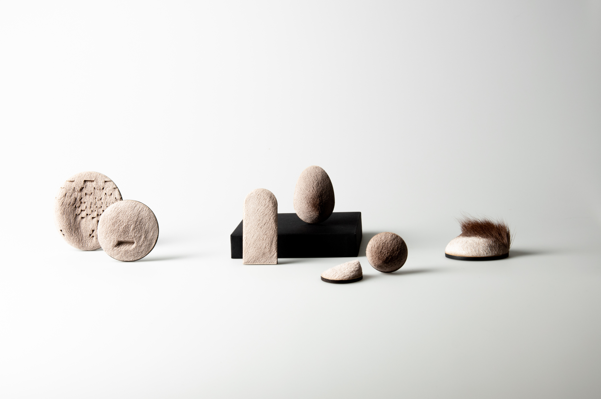 ‘Hide, the Fragment’ reveals or conceals. By cutting, shaving and trimming a focus on unknown details is created. Some fragments evoke associations from which they originate, others elicit new references by shape or pattern. Brooches look like rocks but feel like soft cushions, others remind us of our teddy bears from our childhood or look like African masks. Hiding identity and creating a new one.