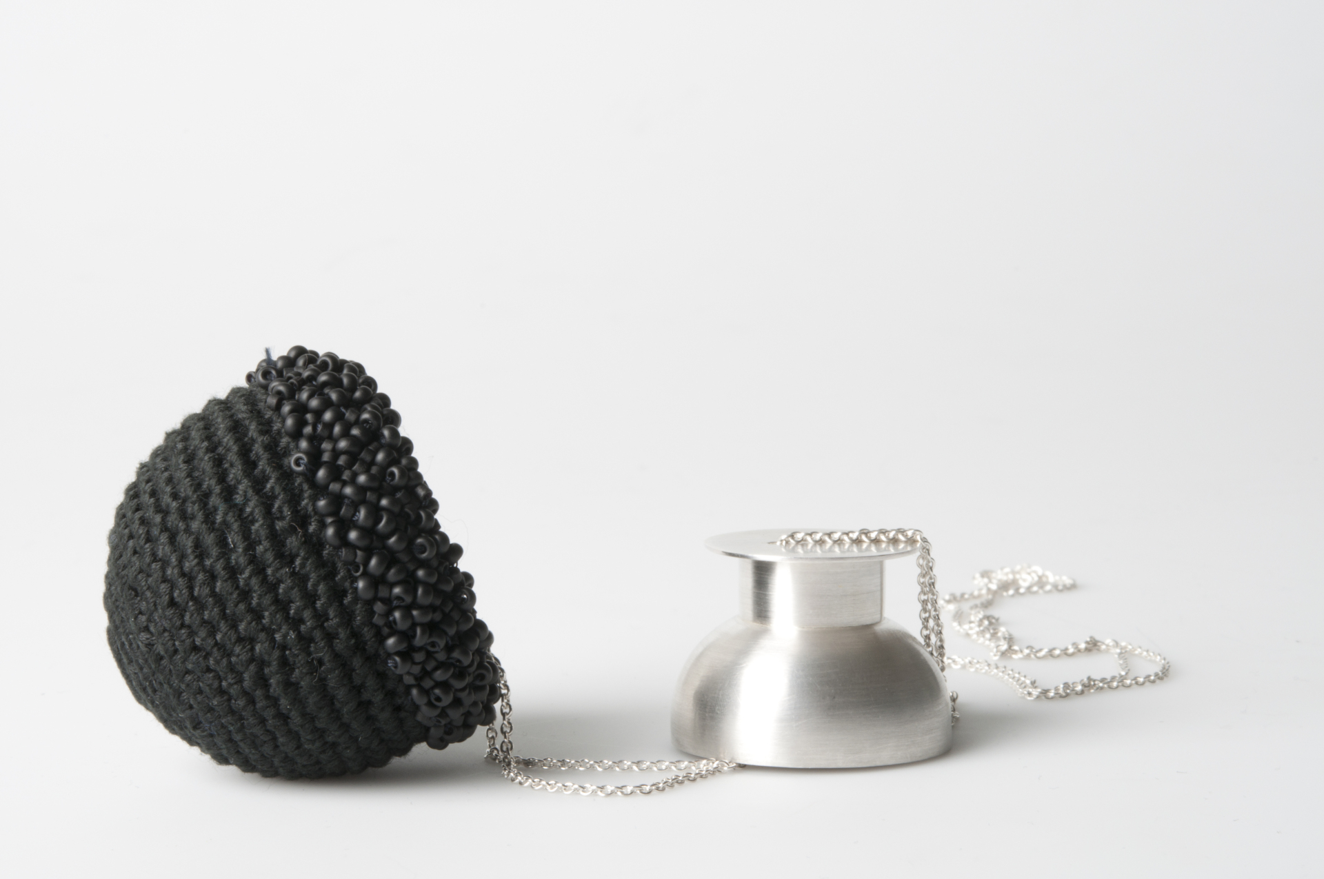 This series of work was created in the context of 'Toegepast 16', a design competition for young talent organized by 'Cultuurplatform Design'. The archetypical pharmacy bottle was the starting point for this project. In contemporary, industrial and identical manufactured pharmacy bottles interventions were made and other materials were joined, both manual and industrial, to create jewellery and objects that attain a more human touch. Hereby, individual and simultaneous uniform pieces arose with the aid of a mass-produced item. Every violet glass pharmacy bottle was cut by hand and tranformed into a new object, pendant or bracelet, taking into account the form and function of the original artefact.
