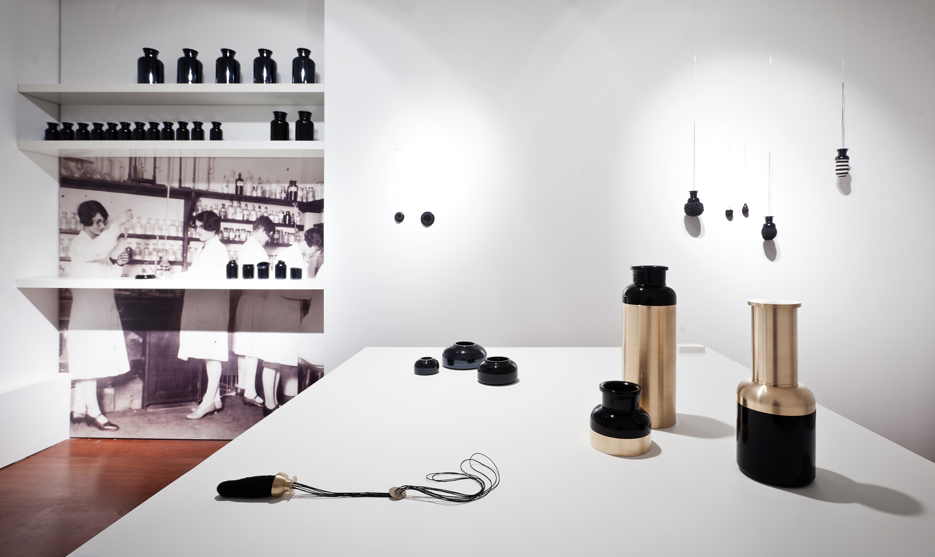 This series of work was created in the context of 'Toegepast 16', a design competition for young talent organized by 'Cultuurplatform Design'. The archetypical pharmacy bottle was the starting point for this project. In contemporary, industrial and identical manufactured pharmacy bottles interventions were made and other materials were joined, both manual and industrial, to create jewellery and objects that attain a more human touch. Hereby, individual and simultaneous uniform pieces arose with the aid of a mass-produced item. Every violet glass pharmacy bottle was cut by hand and tranformed into a new object, pendant or bracelet, taking into account the form and function of the original artefact.