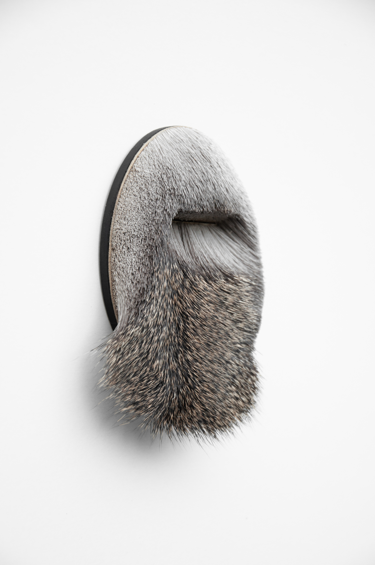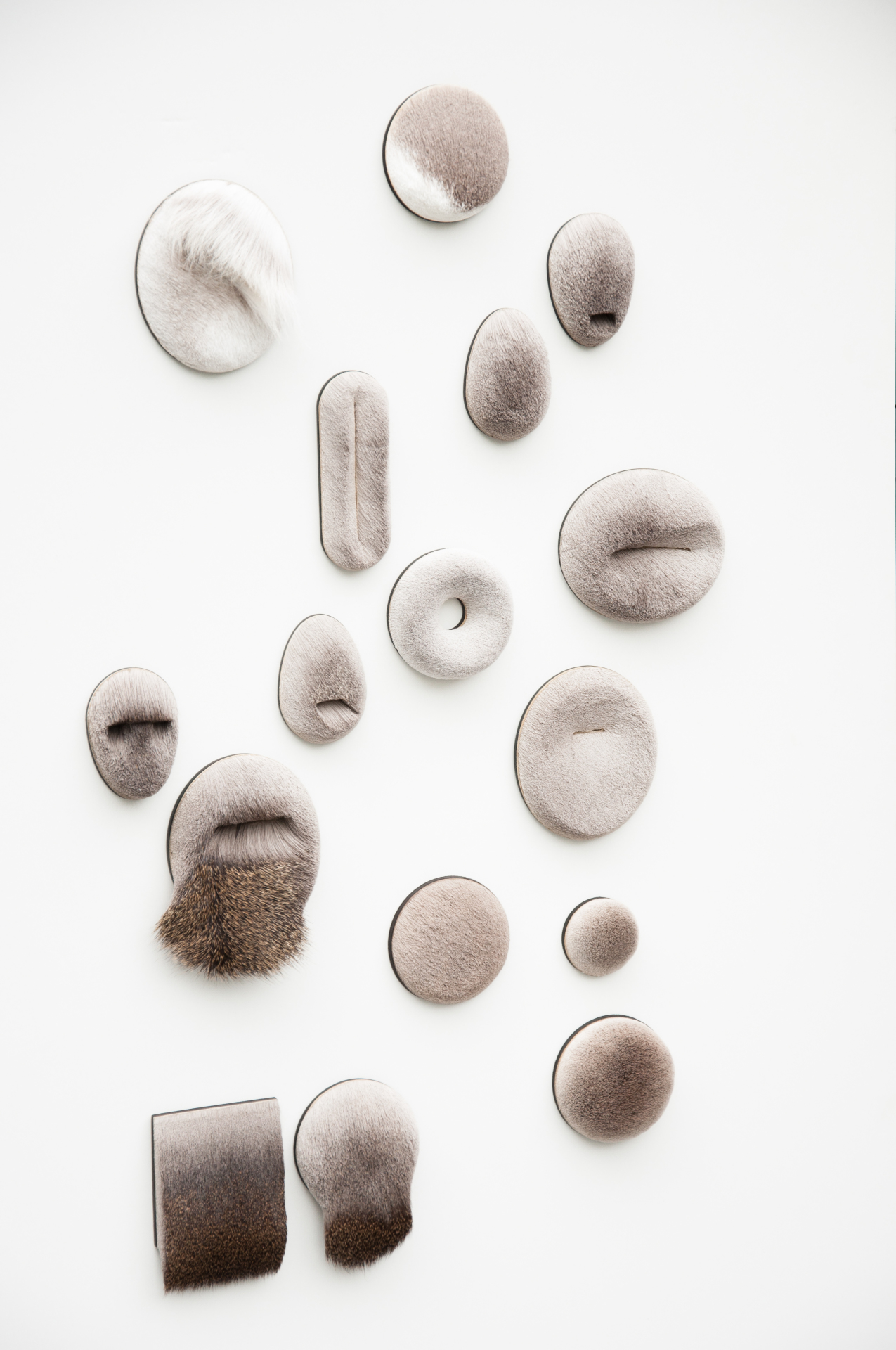 Hide, the Fragment reveals or conceals, depending on how close it is to your skin. Does the fragment still evoke associations with the animal from which it originates? When the whole is missing, can the fragments be seen as worthy identities? Does the pattern or shape elicits new references? These questions influenced Lore’s work in which fragments focus on the particular skin, on the natural hair direction and specific details. This is similar to a photographic image in which a particular subject is defined, creating a new reality. By cutting and shaving a focus is created on hidden details. It doesn’t reveal what you can see vague already, it rather reveals new structures of matter. The intimate partnership between the maker and the material shapes a hair-fine imagery and intriguing visual language.